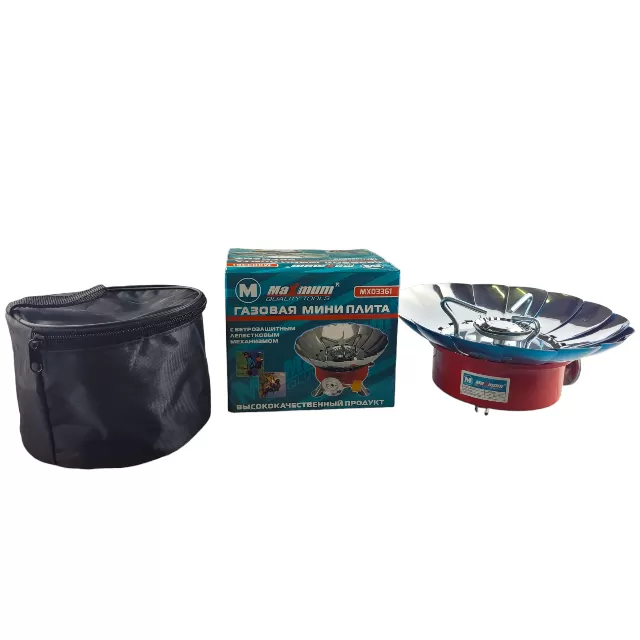 Компактная туристическая плита для газовых баллончиков будет работать в любых условиях. Конструкция размещена на складных ножках и оснащена чехлом, пьезоподжигом и защитой от утечки газа. Автоматическое пьезозажигание позволяет легко разжечь горелку поворотом крана и простым нажатием кнопки на корпусе. Мощность горелки около 2,8 кВт. Безопасная система крепления картриджа. Плавное регулирование пламени.