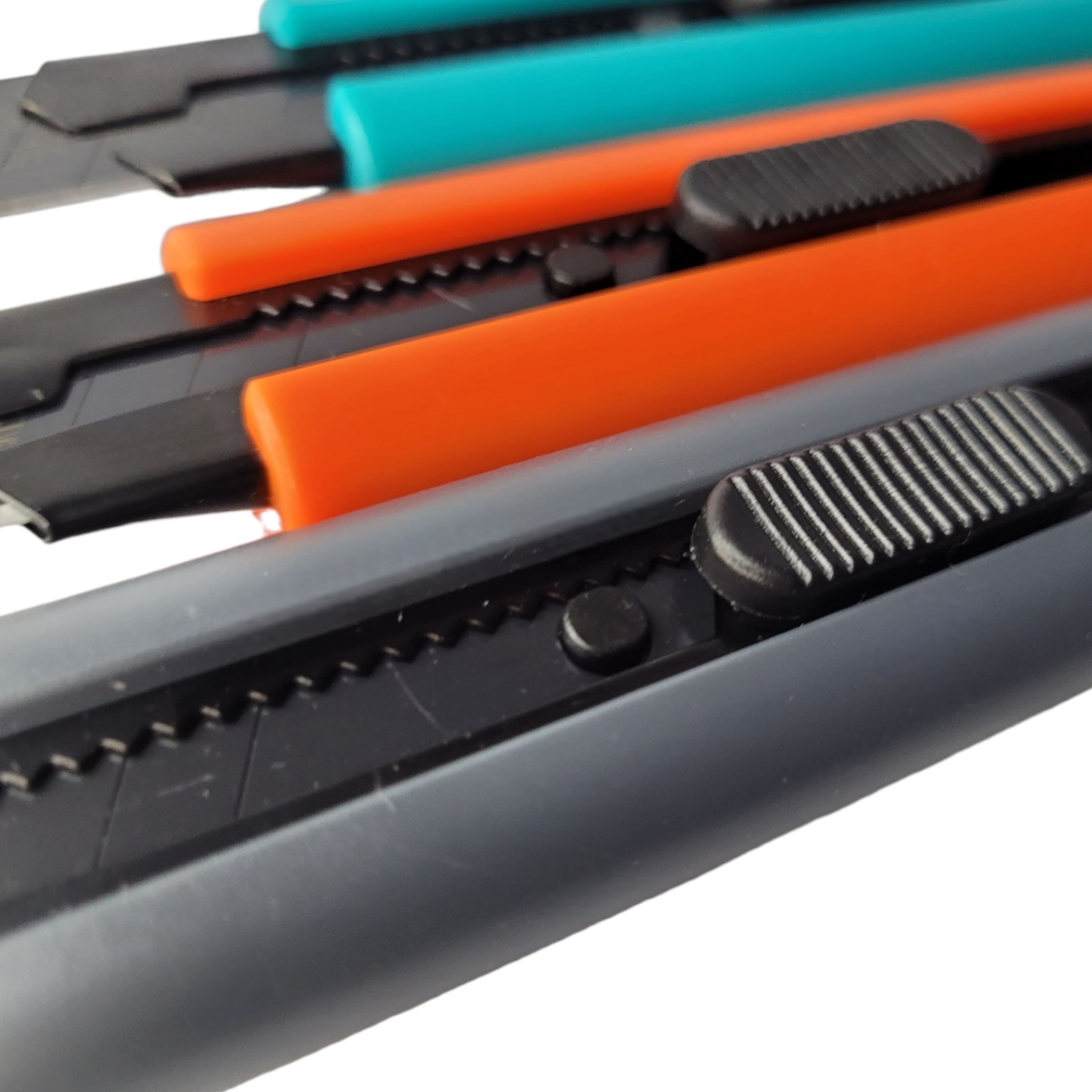 Нож канцелярский/строительный с кнопкой фиксации от "Maximum Quality Tools" предназначен для разрезания гипсокартона, бумаги, обоев, картона, ковролина, линолеума и т.п. Стильный пластиковый корпус выпускается в 3 цветах и дополнен металлической направляющей, а также отсеком для запаски. Общая длина ножа 160 мм, ширина 30 мм. Усиленный канцелярский нож поставляется с 3мя чернеными лезвиями толщиной 0.6 мм.