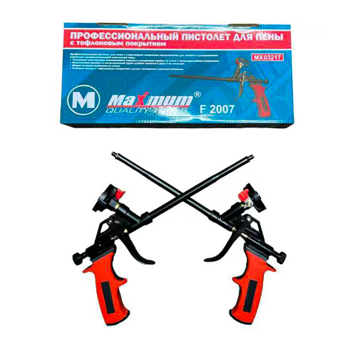 Пистолет для пены с тефлоновым покрытием от Maximum Quality Tools используется профессионалами для точного и дозированного нанесения монтажной пены на поверхность.
