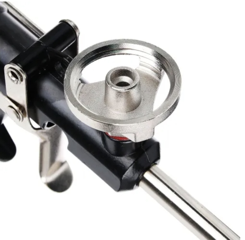 Профессиональный пистолет для монтажной пены от нашего с прочным алюминиевым корпусом черного цвета обеспечивает точное и аккуратное нанесение полиуретановой пены благодаря регулировке подачи пены и игольчатому клапану. Усиленная конструкция из алюминия и нержавеющей стали гарантирует долговечность пистолета для пены. Эргономичная металлическая рукоятка и курок обеспечивают надежный хват. Съемный адаптер баллона и защитный колпачок на трубке предотвращают засыхание пены, делая инструмент идеальным для монтажа окон и дверей, заполнения щелей и звукоизоляции.