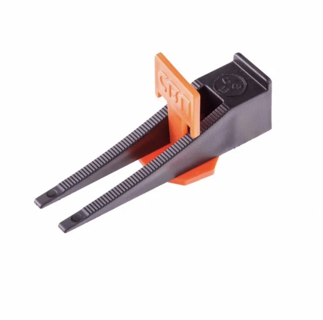 2. Клин — Вставляется в паз зажима и с усилием заводится под ним, стягивая плитки и выравнивая их по высоте.