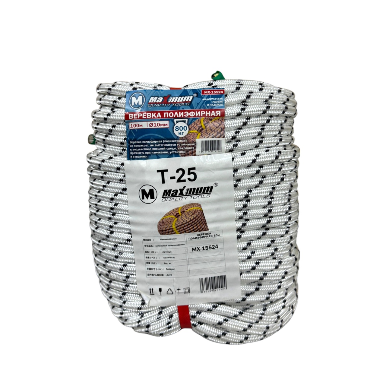 Полиэфирный белый шнур в бухте от "Maximum" 10 мм x 100 м с хлопковым сердечником - универсальный помощник в хозяйстве.